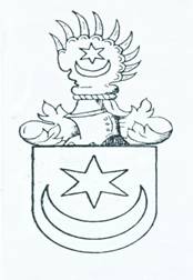 einem goldenen Stern. Helmzier: Das Schildbild in einem Flügel Helmdecke: Blau und Gold.